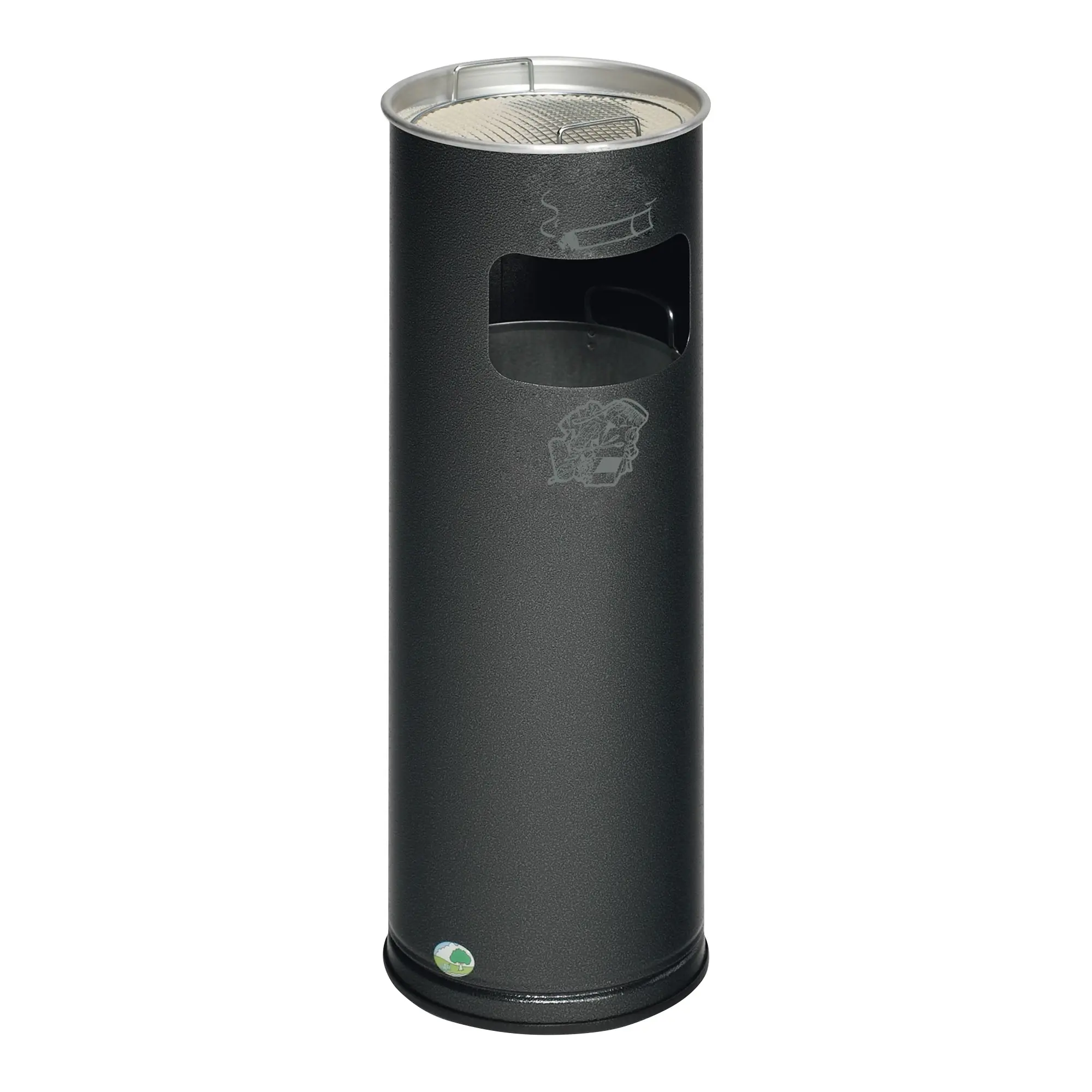 Ein sehr solider Abfallsammler mit 16,7 Litern Fassungsvermögen. Die Qualität des Stahlblechs ist top! Der Ascher funktioniert super, und das Kippensieb erleichtert die Entsorgung von Zigarettenstummeln enorm.