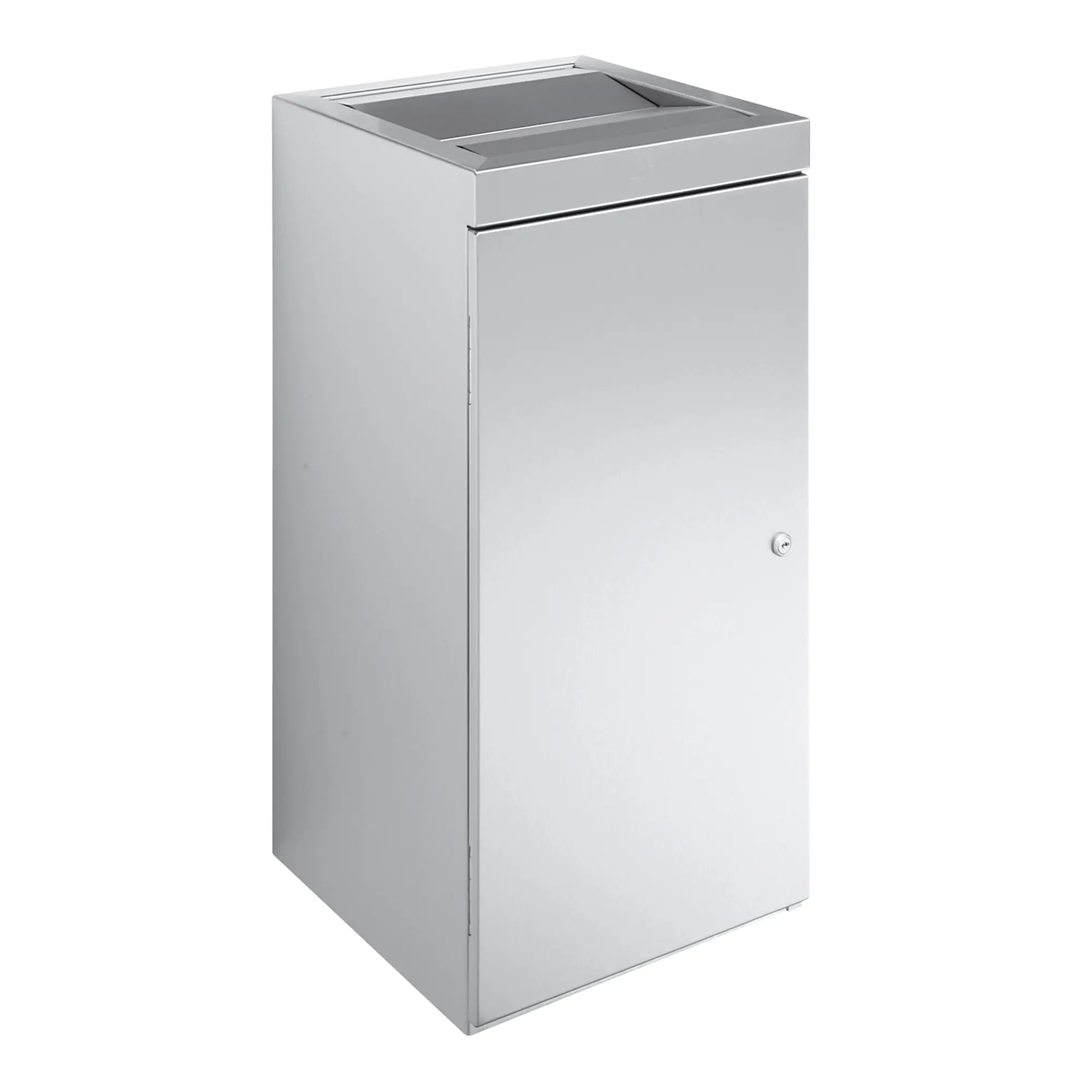 Wagner EWAR WP 180 Abfallbehälter mit 36 Liter Fassungsvermögen. Aus hochwertigen Edelstahl gefertigt ist der Abfallbehälter besonders langlebig sowie robust und ist dank seiner keimreduzierenden Oberfläche äußerst hygienisch. Der Behälter ist abschließbar und wird sicher an die Wand montiert. So ist er nicht nur gut gegen Vandalismus, sondern auch gegen Diebstahl geschützt. Alternativ ist er mit seinen 4 Gummifüßen auch zur Bodenaufstellung geeignet. Die selbstschließende Einwurfklappe verbirgt den Inhalt subtil und wirkt feuerhemmend. Der Behälter hat im Inneren ein Gitterkorb, welcher zum Entleeren einfach herausgenommen wird. Lieferung einschließlich Befestigungsmaterial.Eigenschaften Wagner EWAR WP 180 Abfallbehälter 36 Liter