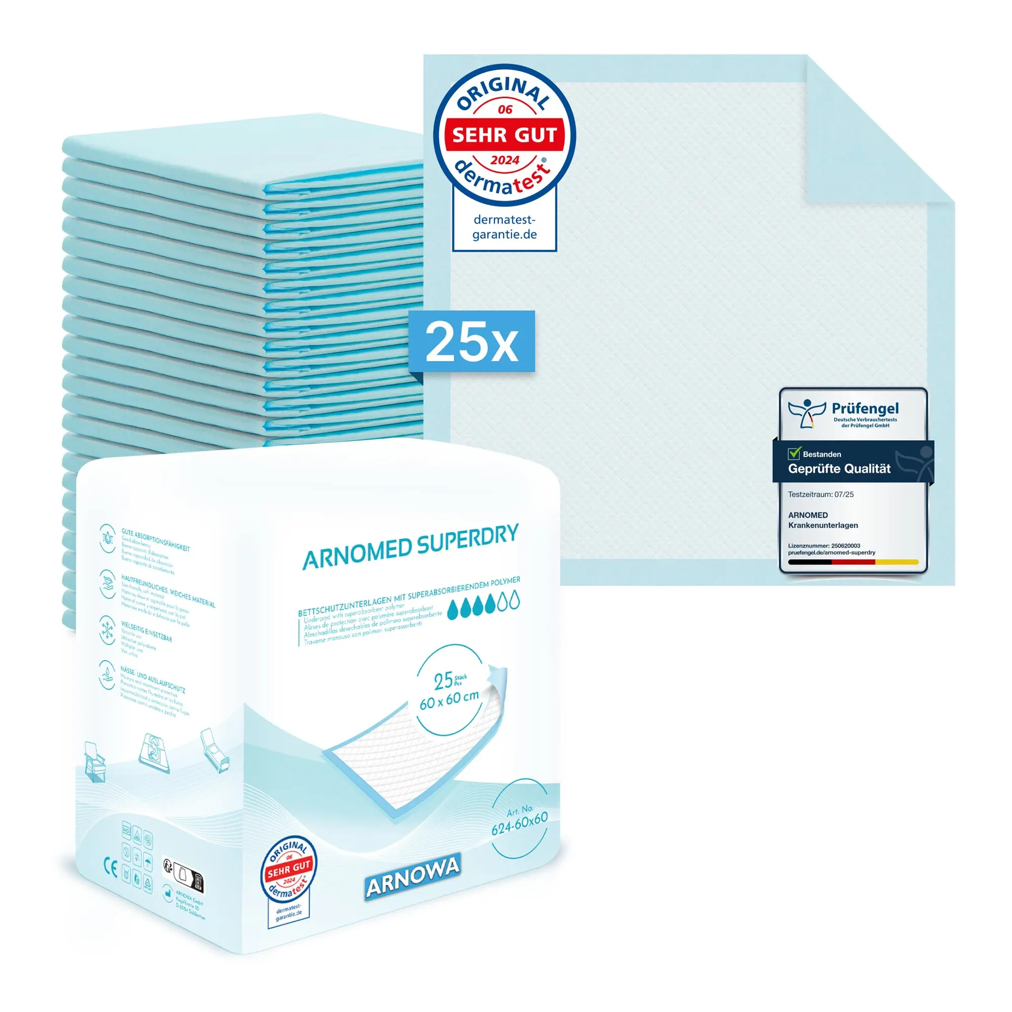 Eigenschaften ARNOMED SUPERDRY Einweg-Bettschutzunterlagen, 25 Stück