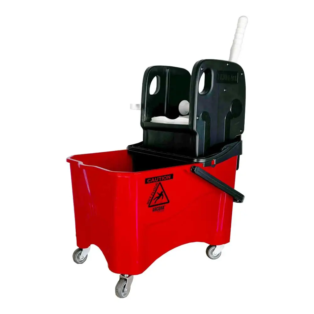Der Arcora KIM PLUS 30 Einfachfahreimer mit Presse ist ein robuster und praxistauglicher Begleiter für die tägliche Unterhaltsreinigung auf kleineren bis mittleren Flächen. Mit einem 30-Liter-Frischwasserbehälter und einem separaten 12-Liter-Schmutzwassereimer ermöglicht er eine hygienische Trennung von sauberem und gebrauchtem Wasser. Die stabile Profi-Presse sowie vier leichtläufige Lenkrollen sorgen für effizientes und komfortables Arbeiten und leichtes Manövrieren beim Nass- oder Feuchtwischen in Krankenhäusern, Schulen, Büros oder öffentlichen Einrichtungen. Der Einfachfahreimer, hergestellt aus Recycling-Kunststoff (ECOBLACK Technology) in 5 Farben, überzeugt durch hohe Bruchsicherheit und Stabilität.
