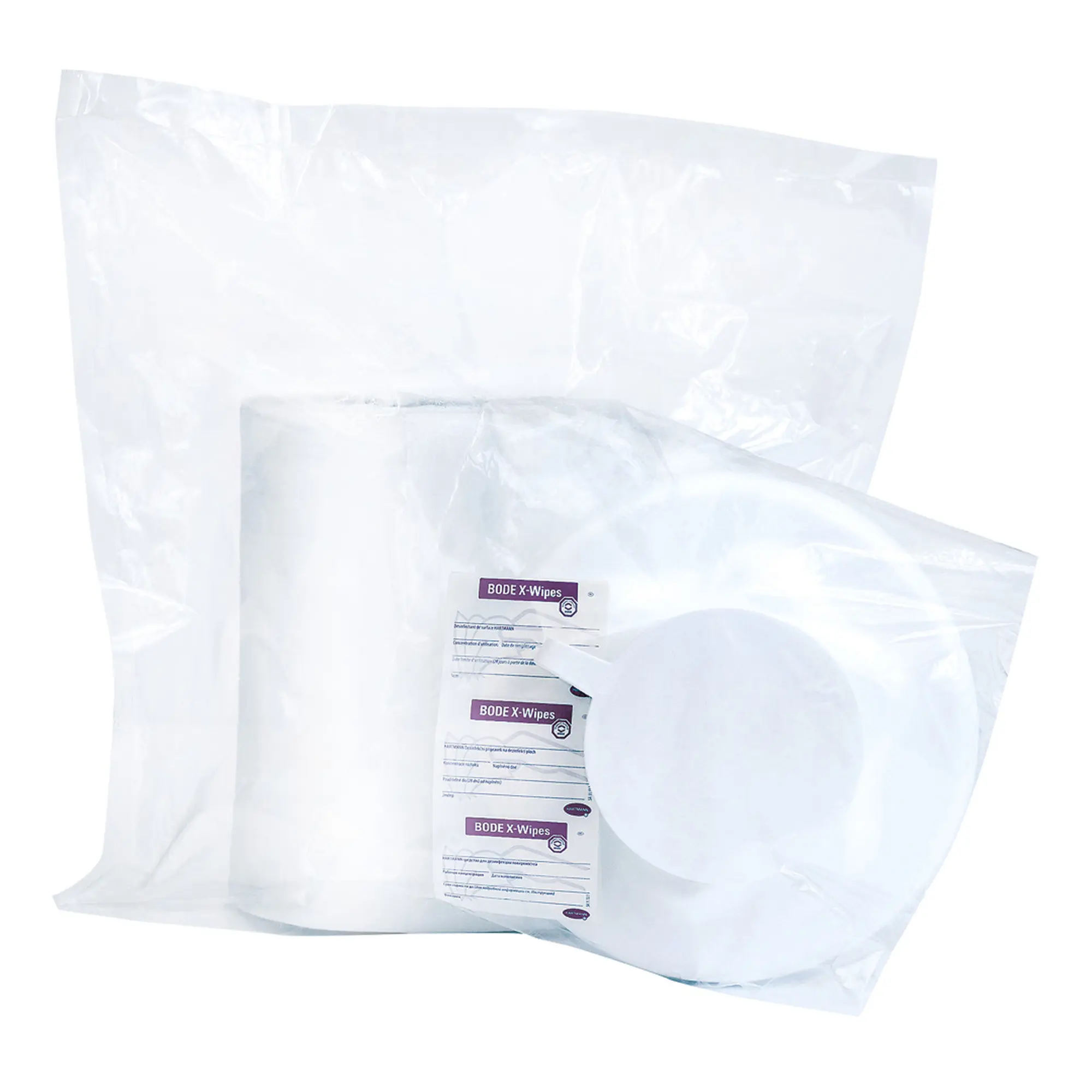 Bode X-Wipes Vliesrollen im transparenten, reißfesten Folienbeutel eignen sich hervorragend zur Desinfektion von Flächen und Instrumenten, besonders im Hochrisikobereich. Die hochwertigen Vliestücher bestehen aus saugfähigem PET Vlies (60 g/m²) und verfügen über eine optimale Wirkstoffabgabe sowie eine hohe Reißfestigkeit. Der spezielle Folienbeutel verhindert Kontamination der Tücher und der Anwendungslösung durch den Tuchspender.