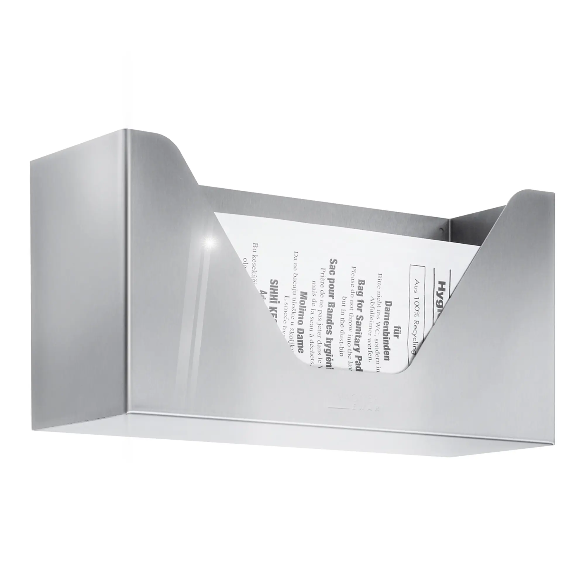Mit dem Wagner EWAR WP 155 Hygienebeutel-Vorratsbehälter können den Gästen Papiertüten zur Verfügung gestellt werden. Geeignet für den Spender sind handelsübliche Papierbeutel. Er ist aus hochwertigem Edelstahl hergestellt und ist besonders robust sowie pflegeleicht. Die Oberfläche wirkt keimreduzierend und bietet so den Gästen einen hygienischen Spender. Der Behälter wird sicher mit drei Schrauben an die Wand montiert. Lieferung einschließlich Befestigungsmaterial.Eigenschaften Wagner EWAR WP 155 Hygienebeutelspender