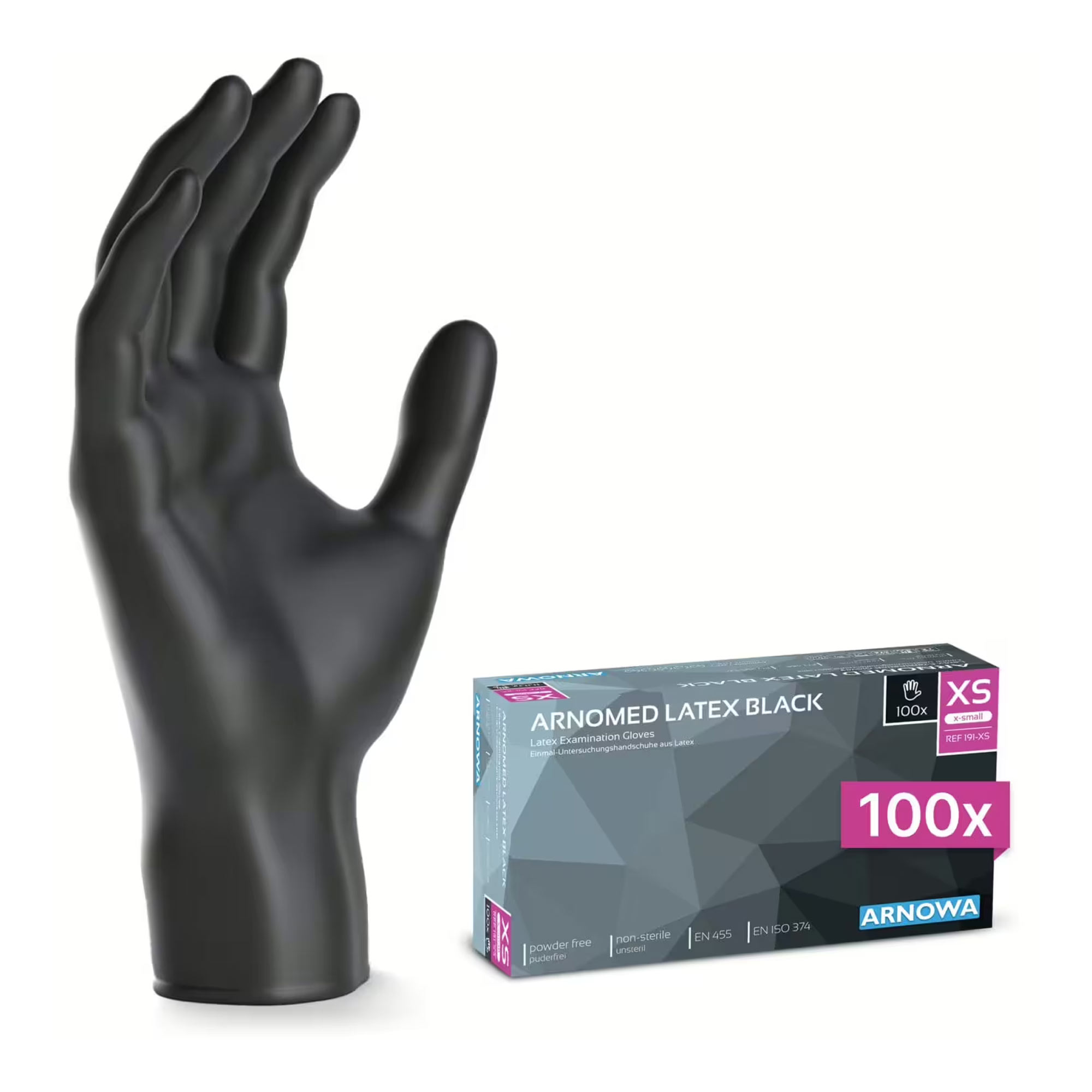 ARNOMED CLASSIC LATEX BLACK Latexhandschuhe schwarz puderfrei, VE 100 Stück
