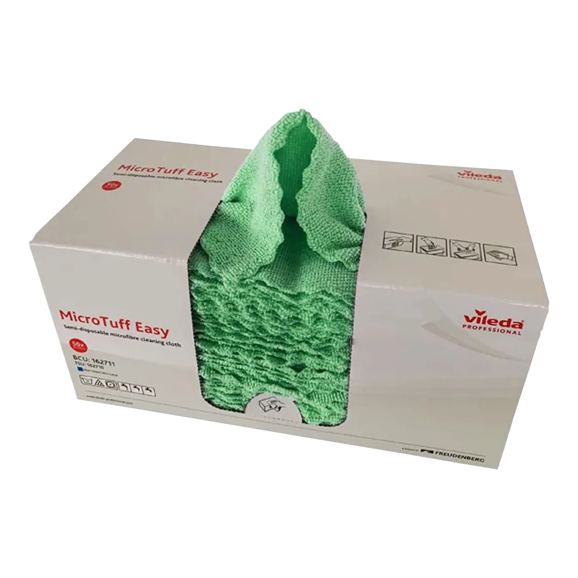 Das Microfasertuch MicroTuff Easy in der praktischen Box mit 50 Stück ist die ideale Lösung für die effiziente Reinigung in verschiedenen Anwendungsbereichen. Entwickelt als Kurzzeittuch, bietet es eine einfache Handhabung und eine wirtschaftliche Nutzung. Je nach Bedarf kann das MicroTuff Easy als Einwegtuch verwendet und nach der Nutzung entsorgt werden, oder es kann bis zu 20 Mal gewaschen und wiederverwendet werden. Das Tuch besteht zu 100 % aus Microfaser und eignet sich daher auch hervorragend für die Reinigung von fetthaltigen Verschmutzungen. Es ist in einem handlichen Format von 30 x 30 cm erhältlich und überzeugt durch seine hohe Saugkraft und Reinigungsleistung. Die gestrickte Struktur sorgt für einen besonders voluminösen Griff, der das Putzen noch angenehmer macht. Die große Öffnung sorgt dafür, dass der Füllstand jederzeit gut sichtbar ist. Zudem verfügt das MicroTuff Easy über ultraschallverschweißte Außenkanten, die die Haltbarkeit und die Widerstandsfähigkeit des Tuchs zusätzlich erhöhen.