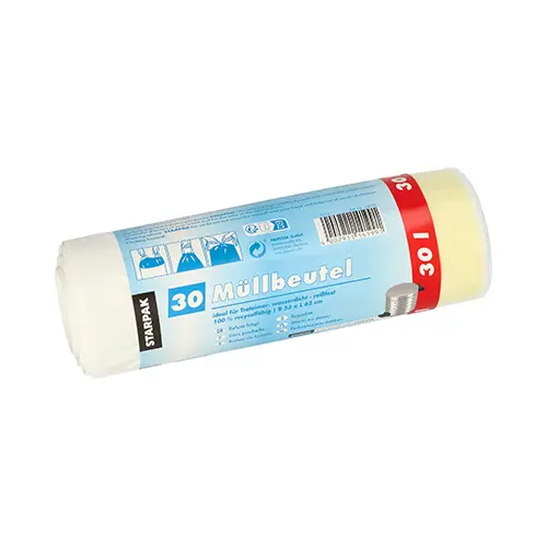 Starpak Müllbeutel mit Zugband, LDPE 30 l 62 cm x 53 cm weiß