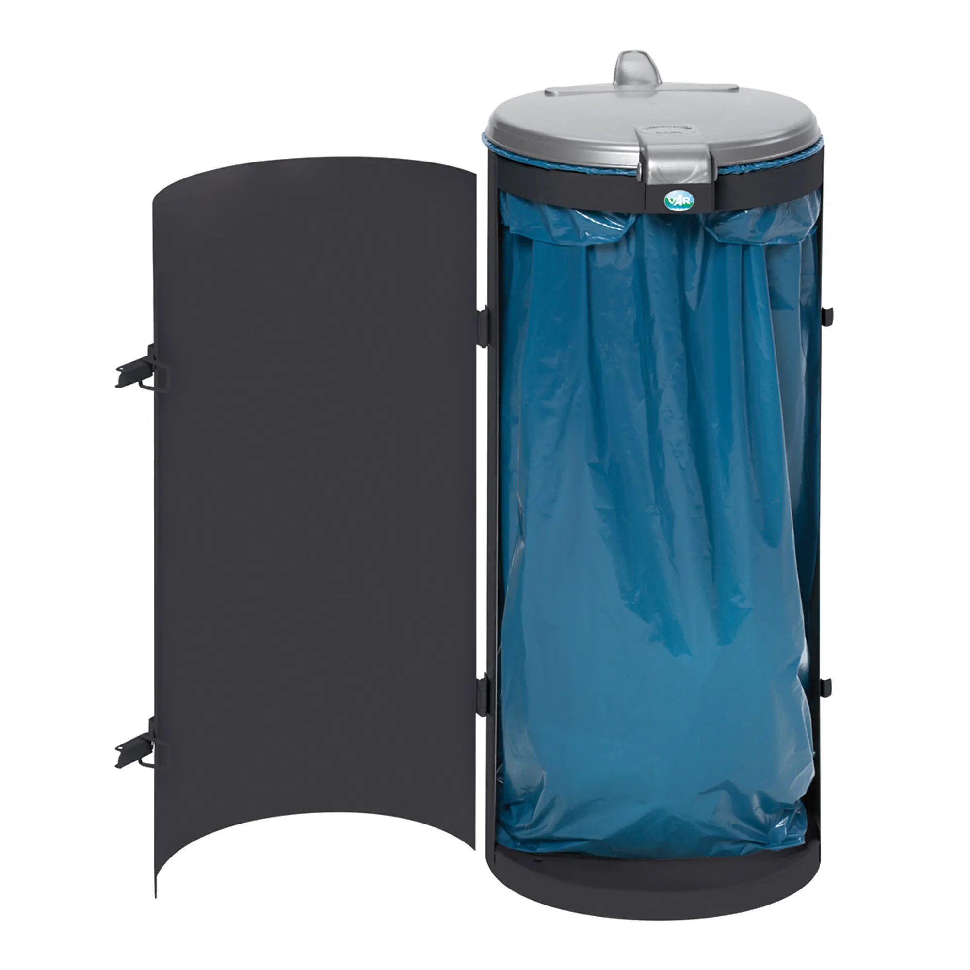 Der Abfallsackhalter „Junior“ verfügt über ein schützendes, halboffenes Metallgehäuse inklusive Einflügeltür. Dadurch ist er besonders robust und wetterfest. Die Hinterseite des Gehäuses kann geöffnet werden, damit sich die Abfallsäcke besonders leicht entnehmen lassen. Sein verzinkter Klemmring fixiert Müllbeutel mit bis zu 120 Liter Fassungsvermögen. Der feste Boden garantiert ein stabilen Stand. Das grüne und gelbe Modell besitzen einen Kunststoffdeckel in der passenden Farbe. Die übrigen Ausführungen sind mit einem silberfarbenen Kunststoffdeckel ausgerüstet. Das Metallgehäuse ist zum Schutz vor Korrosion pulverbeschichtet. Im Boden des Kompakt-„Juniors“ ist eine Bohrung zur schnellen und diebstahlsicheren Befestigung eingearbeitet.Eigenschaften VAR „Junior“ Beutelhaltergestell Einflügeltür