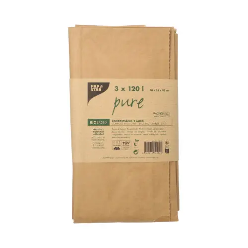 PAPSTAR Abfallsäcke aus Papier "pure" 120 l 95 cm x 70 cm x 25 cm braun , 2-lagig