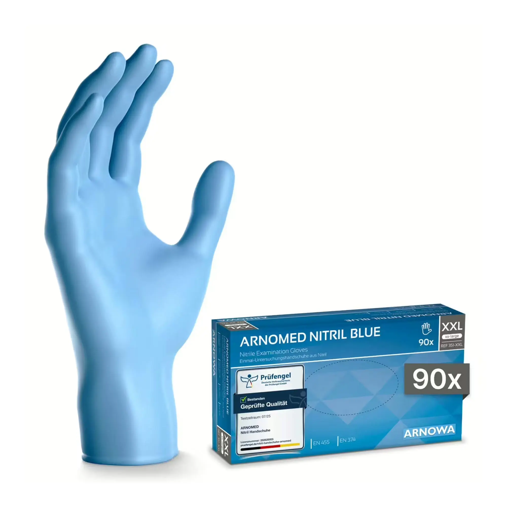 ARNOMED CLASSIC NITRIL BLUE Untersuchungshandschuhe von ARNOWA werden für den zuverlässigen Schutz bei medizinischen, pflegerischen und hygienischen Tätigkeiten verwendet. Die puderfreien Einmalhandschuhe aus hochwertigem Nitril überzeugen durch ihre hohe Elastizität und Reißfestigkeit bei gleichzeitig angenehmem Tragekomfort. Dank der fingertexturierten Oberfläche bieten sie eine sehr gute Griffigkeit und präzises Arbeiten, auch bei feuchten oder glatten Materialien. Die Handschuhe sind beidhändig tragbar und mit einem praktischen Rollrand ausgestattet, der das An- und Ausziehen erleichtert und zusätzliche Sicherheit bietet. Mit einer Länge von ca. 24 cm sowie abgestufter Materialstärke an Finger, Handfläche und Stulpe gewährleisten sie eine ausgewogene Balance aus Schutz und Flexibilität. Als latexfreies und unsteriles Medizinprodukt eignen sich die ARNOMED CLASSIC NITRIL BLUE Untersuchungshandschuhe ideal für den Einsatz in Medizin und Labor, in der Alten- und Krankenpflege, in Kosmetik- und Tattoo-Studios, bei Reinigungs- und Desinfektionsarbeiten sowie in der Lebensmittelindustrie. Sie erfüllen die Anforderungen der EN 455 sowie der EN ISO 374-1 Typ B und sind lebensmittelecht zugelassen.