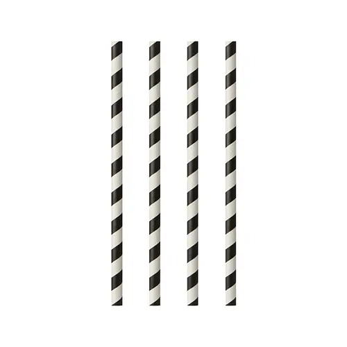 PAPSTAR Trinkhalme, Papier Ø 6 mm, 20 cm schwarz/weiß "Stripes"