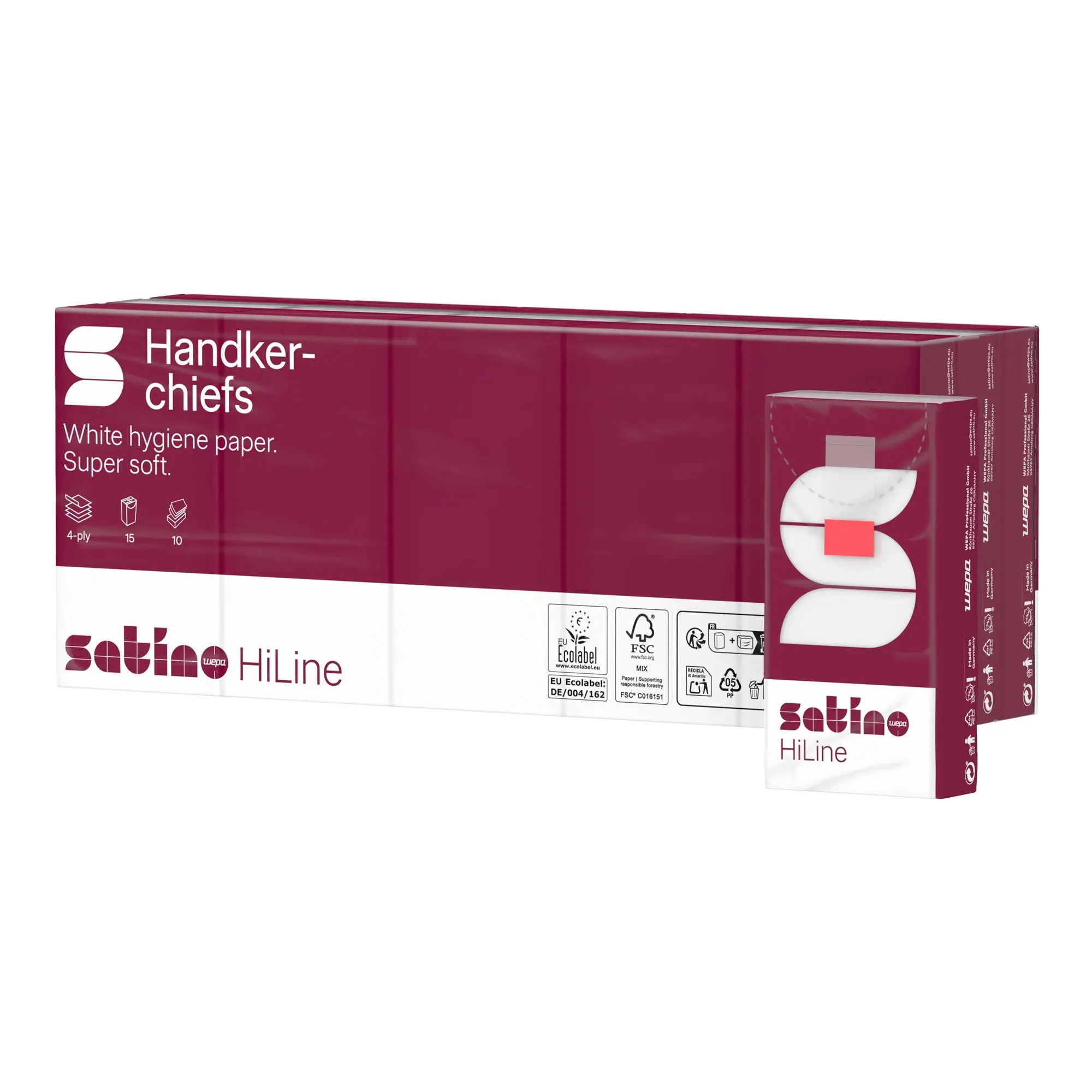 Die 4-lagigen Satino by Wepa HiLine Taschentücher in extra weicher Tissue-Qualität sind besonders sanft zu strapazierter Haut auch bei häufigem Naseputzen in der Erkältungs- oder Heuschnupfenzeit. Sie bestehen zu 100 % aus FSC-zertifiziertem Zellstoff.