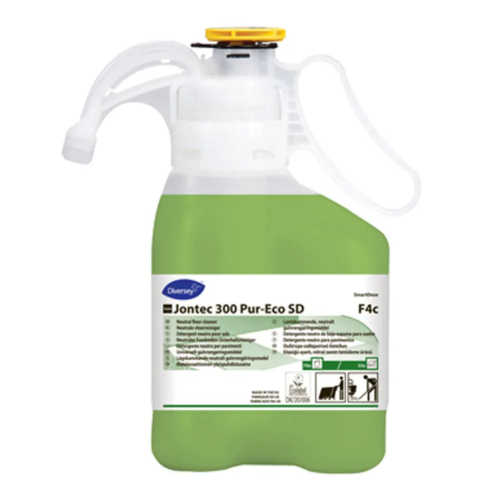 TASKI Jontec 300 Pur-Eco SD ist ein schnell wirkender Fußboden-Unterhaltsreiniger für alle wasserfesten Hartbeläge mit hervorragender Reinigungsleistung. Er trocknet schnell und streifenfrei und hinterlässt einen angenehmen Duft. Da Jontec 300 Pur-Eco SD Fußbodenreiniger sehr niedrig schäumend ist, eignet er sich auch bestens für Scheuersaugmaschinen.Pur-Eco-Produkte sind die erste Wahl, wenn Sie Reinigungsleistung, Arbeitssicherheit und ökologische Verantwortung miteinander vereinbaren möchten.